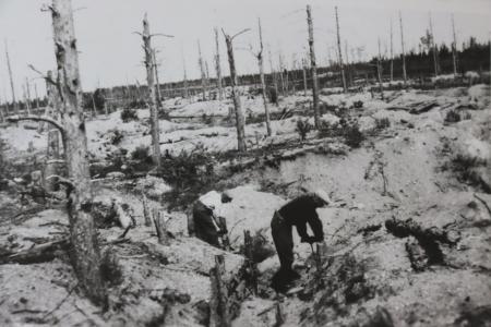 Sökande i juli 1942 efter kvarblivna stupade vid Summa slagfält 1940.