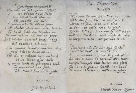 Minnestexter från 1961 och 1962 vid platsen för flygolyckan i Kvevlax 3 januari 1961.