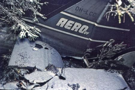 Tjugofem personer omkom när Aeros plan (DC 3) på väg från Kronoby till Vasa störtade i Kvevlax 3 januari 1961. Foto Börje Snickars.