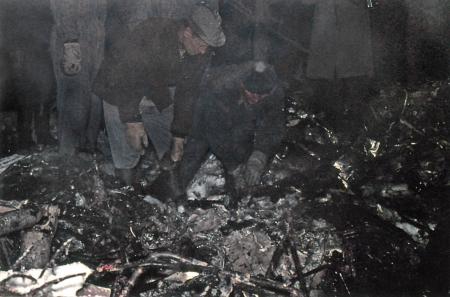 Tjugofem personer omkom när Aeros plan (DC 3) på väg från Kronoby till Vasa störtade i Kvevlax 3 januari 1961. Foto Börje Snickars.