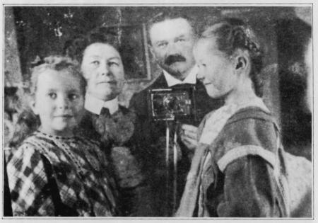 Herrgård (Herrkååli) i Ilmola. Bilden: John Herrgård (1874-1924), son till Karl Johan Herrgård, var fotointresserad och tog själv bilden genom en spegel. Vänster: Birgit, frun Emilia, John, Sigyn.