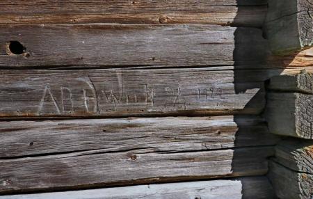 Sjudarlada,”Wiikens ladon”, på Herrgård i Hästhagen. Inristning på väggen: AB H Wiik 7/7 1922. Ladan, med okänd ålder köptes från Wiik av Edvin Herrgård. Foto Mikael Herrgård.