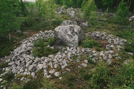 Fornminne, dubbeltomtning från 1100-talet på Malbacken (15 meters nivå) i Köklot. Tomtningen (tillfällig boplatsgrund) var en betydande sälfångststation, även två andra tomtningar har noterats på backen. Foto Mikael Herrgård.