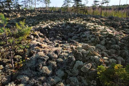 Fornminne, tomtning på Knapulberget i Österhankmo. I anslutning finns ett tjugotal små förvaringsgropar. Fyndplatsen på 27,5 metersnivå bör tolkas som sälfångstläger några hundra år före Kristus. Foto Mikael Herrgård.