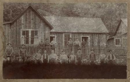 Fritid vid booninghuosi, Jakob Berg skall finnas med här. Troligen mannen längst till vänster.